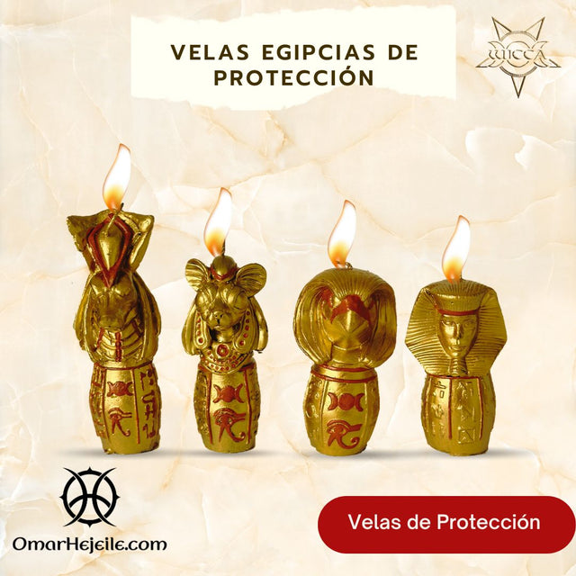 Discover the power of Egyptian candles for protection with the 4 forces! Each of these candles represents one of the Egyptian deities in charge of safeguarding different aspects of life and providing protection against adversity.